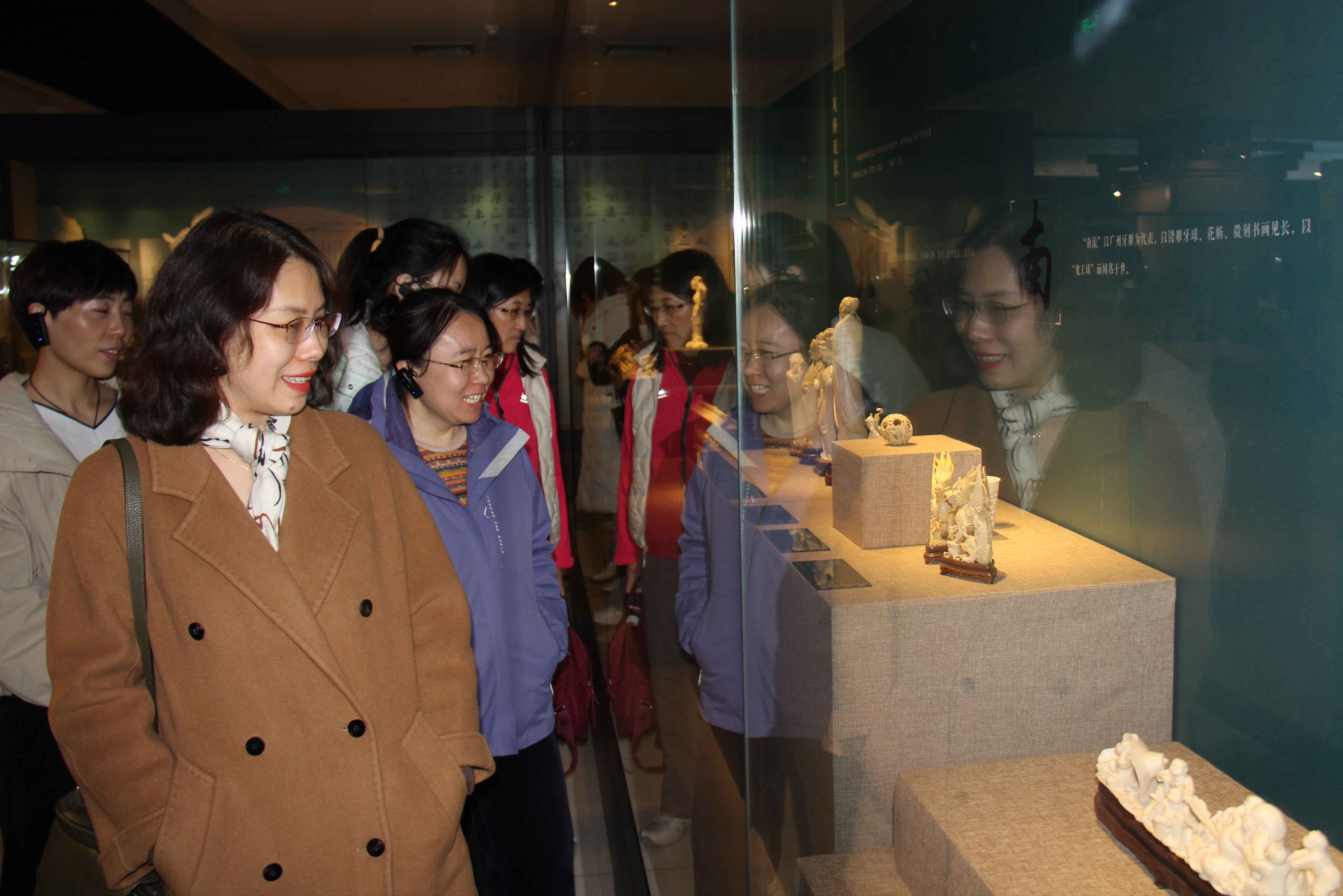 女职工们在奥林匹克森林公园以健步走拉开了活动帷幕,三五成群,步伐矫健,他们一边欣赏沿途的风景,一边谈笑风生,充分享受着沐浴阳光和健步走带来的快乐。随后一行人来到北京工艺美术博物馆参观《邂逅·八个绝活燕京八绝沉浸体验大展》,在讲解员的讲述下,聆听重点藏品背后的故事,并学习体验明艳典雅的中华传统手工艺——点翠,点翠是我国传统的金属工艺和羽毛工艺的绝美结合。在讲师的指导下,大家亲自体验了点翠的制作过程,感受到了这一传统手工艺的魅力。